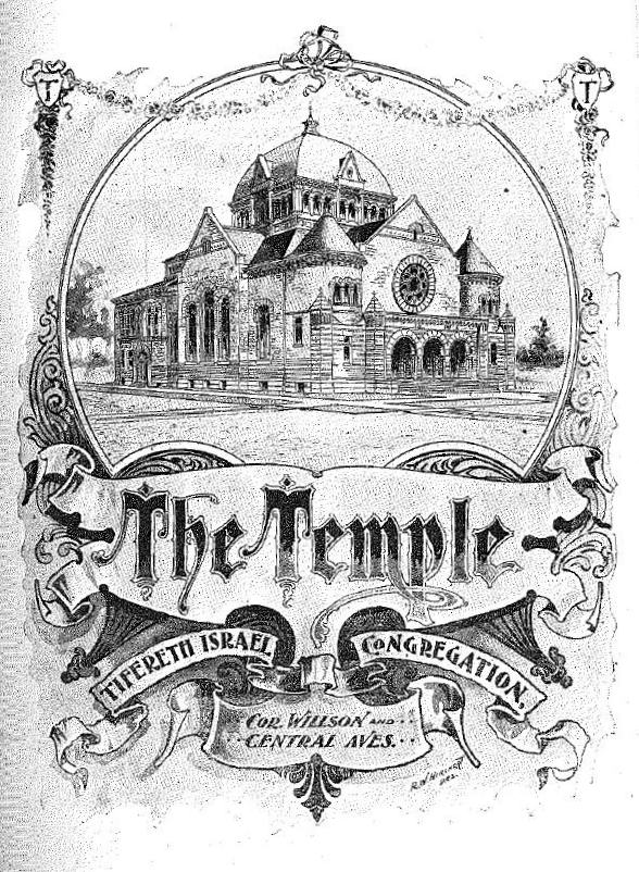 (pdf) ] In 1894 Tifereth Israel moved from its building on Huron Road and East Sixth to a new home at East 55th (then Willson Avenue) and Central Avenue. The 1903 postcard above shows it at the intersection of two streetcar lines. The structure still stands and is now owned by a church. The congregation now called itself simply "The Temple." In her History of The Temple, Ruth Dancyger relates a dispute at the time the sanctuary in the 55th Street building was being designed. Rabbi Gries, who had eliminated the teaching of Hebrew in the religious school, did not want an Ark with Torah Scrolls on the bimah. The trustees objected. The compromise they reached with their rabbi was that the Ark would be built, but the Scrolls would stay in the unopened Ark. Each week Moses Gries read from an English Bible. But on major events, as seen in the program below, they were removed. (As the program for the 1904 Confirmation is not available, we show the program for The Temple's first Confirmation in 1896 which includes the use of the Torah Scrolls.)